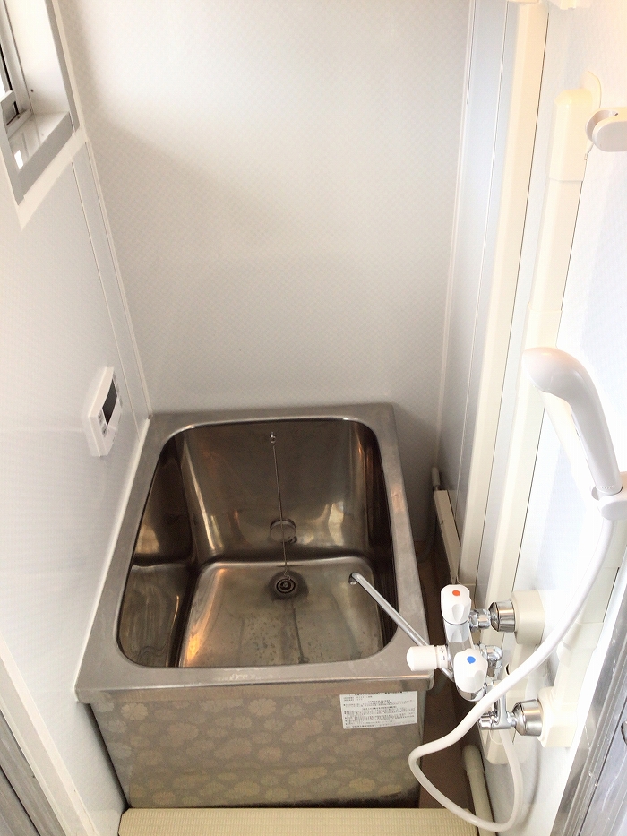 お風呂の湯船は大人1人と小さな子供さん1人なら入れるくらいの広さです。
