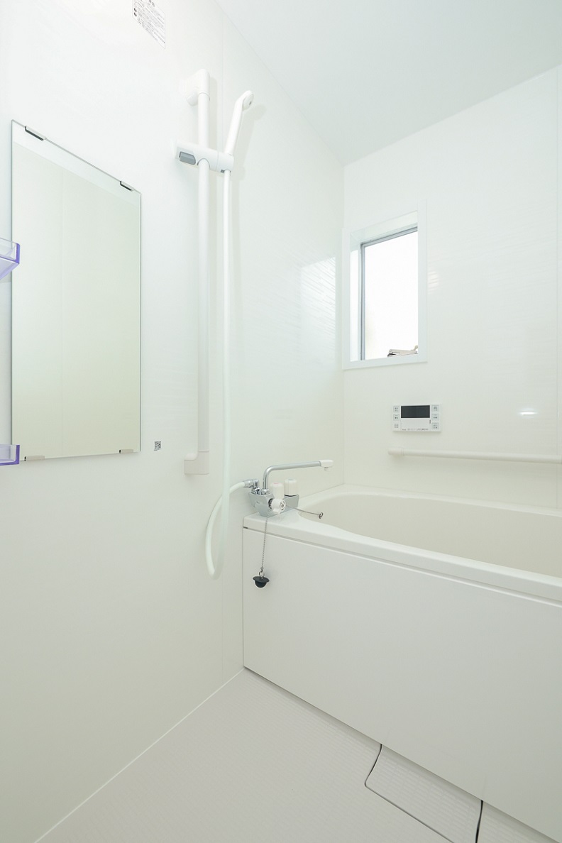 浴槽はビジネスホテル並みの大きさなので、多機能の給湯器を使い、首までゆったりと湯につかることが出来る。