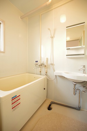 浴槽はビジネスホテル並みの大きさなので、多機能の給湯器を使い、首までゆったりと湯につかることが出来る。