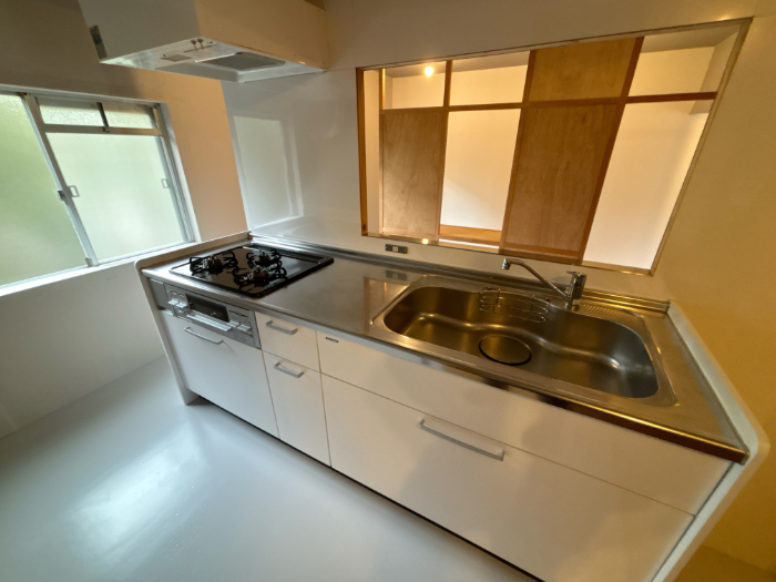 内装は全体的に修繕してくれていますが、清掃が行き届いてない部分があり、特に台所の棚の油汚れとシンクの水垢、風呂釜の汚れは酷く残っていました。