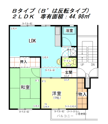 | 間取り | 2LDK | 専有面積 | 44.98㎡ |