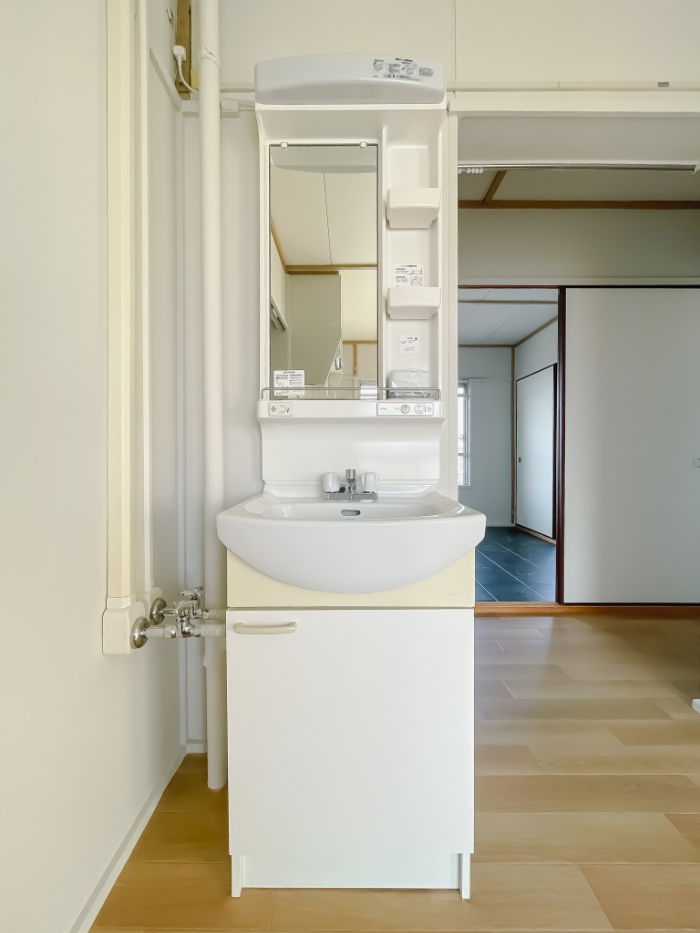 洗面台もキレイで最初からカーテンレールも付いているので用意するものが少なくよかったです