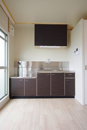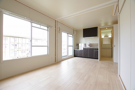 家賃及び共益費(公社徴収のみ)については、概ね3年毎に見直しを行っており、次回改定は令和9年4月を予定しています。 改定の結果により、表示の家賃等が変動する場合があります。 令和元年度に実施したリノベーション、「リノベーション住宅Ⅱ」。主にキッチン、浴室等の改修、LDK化、建具設置などを行っています。 ※掲載写真は反転タイプを撮影したものになります。 |