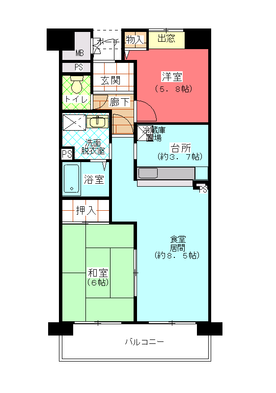 | 間取り | 2LDK | 専有面積 | 57.33㎡ |