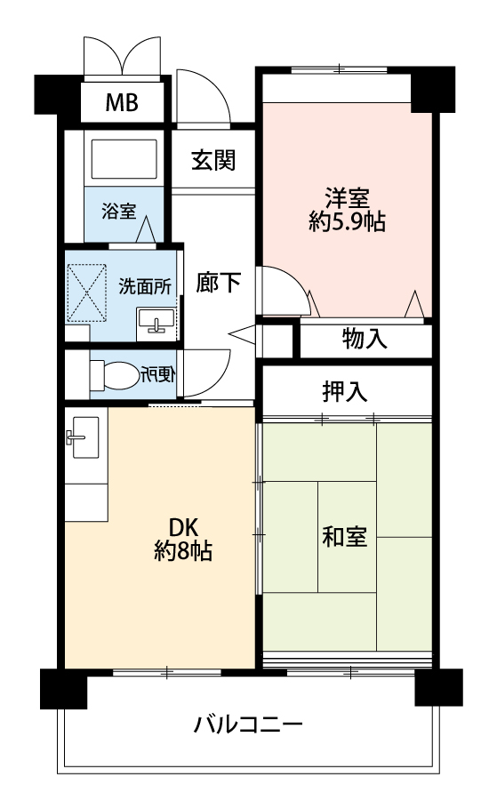 | 間取り | 2DK | 専有面積 | 51.30㎡ |