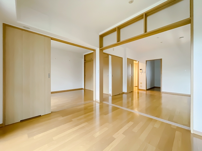 北千里・千里中央周辺で物件を探しており、複数内見した上でこちらに決めました。 駅からは若干距離はありますが、その分静かな環境で気に入ってます。 室内も綺麗で、周囲の音も気にならないです。定期的に清掃の方が制覇してくださるので周囲も綺麗です。 室内について、部屋の仕切りが引き戸なので全部開けると広々として使えます。(逆に全部閉めると、少し狭く感じるかもしれません) 収納もたっぷりあり、ちゃんとしまっておけばスッキリ暮らせると思います。 二人暮らしにちょうど良いサイズ感です。