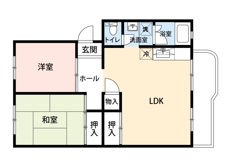 玄関の靴箱、洋室の収納がないので、不便です。